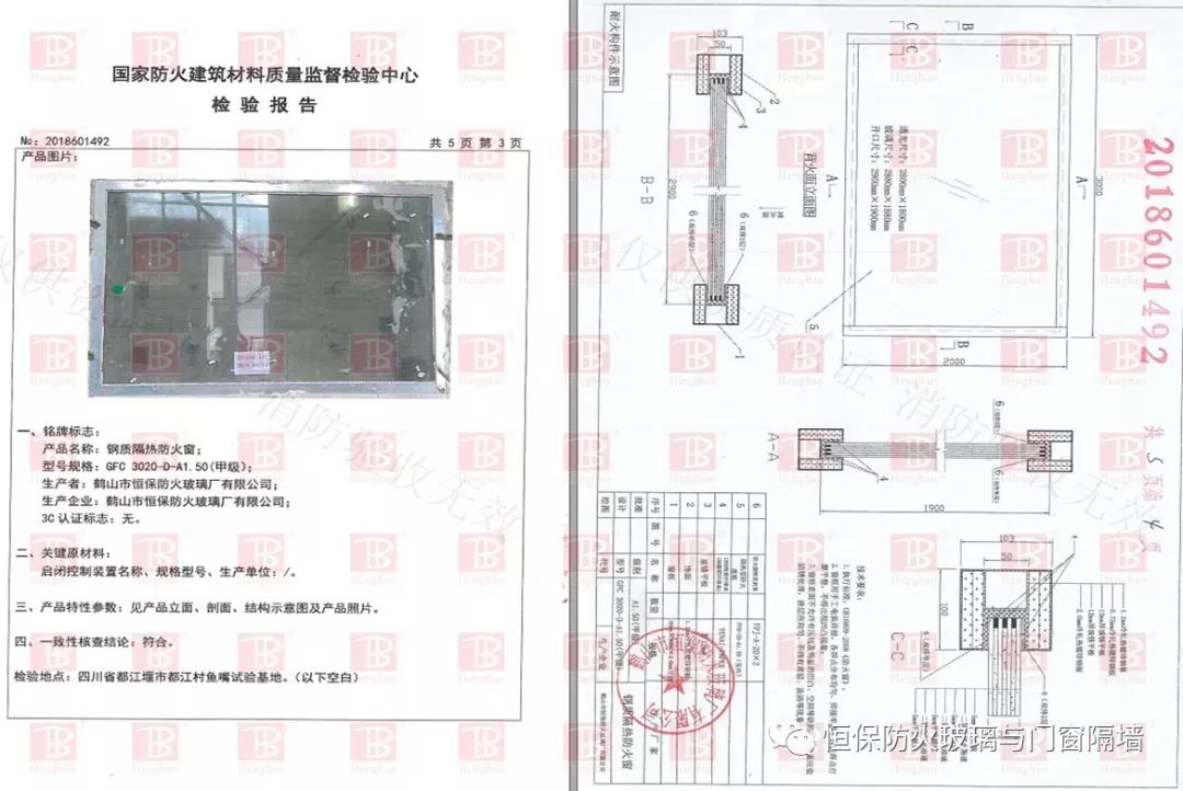 鶴山恒保經過多年努力,終于解決這一行業難題:成功通過超大甲級防火窗國家CCC認證,3000mmX2000mm超大尺寸版面,整窗都能滿足防火完整性和防火隔熱性1.5小時的要求,既符合建筑設計防火規范的要求,又具有窗的通透性,美觀實用。完美解決了地鐵高鐵消防控制室超大甲級防火觀察窗合法化的問題!