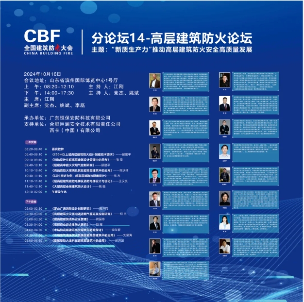 本次論壇的主題為:“新質生產力”推動高層建筑防火安全高質量發展。本次論壇邀請17位嘉賓為高層建筑防火難題作技術報告。